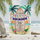 O adorável convite para chás de fraldas do tema "Bebê no Conselho" apresenta um paraíso tropical aquarela com sol, mar, palmeiras e um prato de surfe adornados com uma faixa de festas, luzes festivas de cordas, hibisco e folhas de palma. As cores são perfeitas, quer você esteja tendo uma menina ou um menino pequeno, e este convite vai dar um tom de verão e divertido para a sua celebração. Arte por KL Stock
