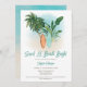 Mergulhe na diversão com nosso convite ilustrado de Summer Sweet 16 Beach Bash! Este convite vibrante apresenta uma cena de praia tropical divertida com palmeiras e pranchas de mesa exuberantes colocadas contra um pano de fundo aquoso de blues e verdes macios, capturando um dia ensolarado de praia. Apresentando um roteiro divertido e na moda, definindo o tom perfeito para uma celebração temática de surf e praia. Este convite combina elementos lúdicos e de verão com um toque de elegância, fazer perfeito para uma memorável celebração Sweet 16 pela praia ou pela piscina.