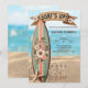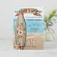Este convite para o chá de fraldas "Surf para cima", com o formato floral, apresenta um fundo de pergaminho macio, flores de hibisco pastel e um prato de superfície retrorreflector inclinado contra uma cerca de madeira rústica. Escrito elegante ao estilo vintage e uma paleta de cor quente de coral, rosa-pincel, verde-sábio e bege arenoso criam uma simpática estética costeira. Se você precisar de outro produto ou personalização correspondente, por gentileza, envie uma mensagem via Zazzle.
