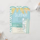 Este chá de fraldas bonitinho e moderno de "Surfer Boy" por correio apresenta um par de pranchas de surf numa praia de areia branca tropical com palmeiras. O verso apresenta um fundo azul-turquesa claro com padrões de ondas brancas. Personalize para suas necessidades. Você pode encontrar mais produtos correspondentes na minha loja.