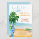 Surfando o convite para segundo aniversário de meninos temáticos. O convite para praia em aquarela chama-se "Surfs up staff ... o homenzinho está fazendo dois!" e a modelo está pronta para você personalizar o texto restante. A design apresenta um oceano azul convidativo que lapida a areia com uma palmeira e conselhos surfs. Perfeito para garotinho fazendo 2 para surfistas, amantes de praia, festa de piscina ou festa de praia,