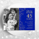 Surpreenda 45º Aniversário Com Foto - Convite Floral Azul Royal Safira Dourada. Design moderno com desenhos de contorno botânico e fonte de letra script. Cartão de convite simples e moderno perfeito para uma celebração de aniversário de casamento elegante. Pode ser personalizado para refletir qualquer ano de casamento. Convites impressos da Zazzle ou modelo digital para impressão instantânea.