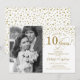 Convite de 10º Aniversário de Casamento com Foto. Design elegante em dourado e branco com fonte manuscrita e confetes. Pode ser personalizado para mostrar qualquer ano de casamento. Saúde por 10 anos!