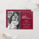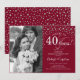 Convite de Surpresa de 40º Aniversário de Casamento com Foto. Design elegante em vermelho rubi e prata com fonte de caligrafia e confetes. Pode ser personalizado para mostrar qualquer ano de casamento. Saúde por 40 anos!