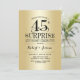 Convite de Surpresa para Celebração do 45º Aniversário de Casamento. Design sofisticado e elegante com padrão de folha de ouro falso. Apresenta fonte de letra elegante. Mensagem para mim se precisar de mais personalização.