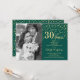 Convite de Surpresa para Bodas de Rubi com Foto. Design elegante em verde esmeralda e dourado com fonte manuscrita e confetes. Pode ser personalizado para mostrar qualquer ano de casamento. Saúde por 40 anos!