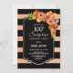 Falso brilho preto e coral, surpresas florais listradas 100º convite de aniversário.