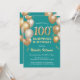 Convites Surpresa 100º Aniversário Teal e Balões Dourados