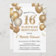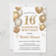 Surpresa 16º Aniversário, Branco e Dourado Balões de Brilho Convite de Aniversário. Para mais personalização, clique no botão "Personalizar" e use nossa ferramenta de design para modificar este modelo.