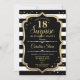 Surpresa 18º Convite de Aniversário. Design clássico com faixas pretas e brancas, fonte de script e ouro brilhante. Perfeito para uma bolsa mensageifesta de aniversario elegante. Pode ser personalizado para mostrar qualquer idade. Envie-me uma mensagem se precisar de mais personalização.
