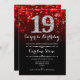 Surpresa 19º Convite de Aniversário. Design vermelho elegante com prata brilhante. Aniversário adulto. Apresenta diamantes, luzes de boque e fontes de script. Homens ou mulheres convidam no dia. Perfeito para uma festa de aniversário na moda. Envie-me uma mensagem se precisar de mais personalização.