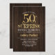 Rustic Surprise 50th Aniversário Celebration. Design elegante com madeira castanha escura e padrão de ouro brilhante. Apresenta uma fonte elegante de script. Envie-me uma mensagem se precisar de mais personalização.