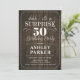 Surpreenda o 50º Convite de aniversário. Design simples com madeira rústica castanha escura e letra branca de script. Celebração surpresa para homem ou mulher. Pode ser personalizado em qualquer idade!