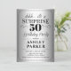 Surpreenda o 50º Convite de aniversário. Design simples em prata e preto. Apresentando padrão de folha de prata falsa e fonte elegante de script. Celebração surpresa para homem ou mulher. Pode ser personalizado em qualquer idade!