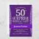 Surpreenda o 50º Convite de aniversário Elegante do design em prata roxa e falso brilho.