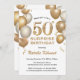 Convites Surpresa 50º aniversário, Balões brancos e Dourado