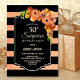 Preto e coral faux glitter striped floral surpresa 50º convite de aniversário.