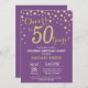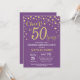 Convites Surpresa 50.º Aniversário Roxo e Diamante Dourado