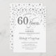 Surpresa 60 anos de comemoração Convite para design branco elegante com prata brilhante falsa. Possui fonte de script e confete de diamante. Saúde para 60 anos! Pode ser personalizado para mostrar qualquer ano de casamento. Envie-me uma mensagem se precisar de mais personalização.