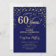 Surpresa 60º Convite de aniversário. Design elegante em azul marinho e ouro brilhante falso. Apresenta a fonte do script e os diamantes confetti. Saúde para 60 anos! Envie-me uma mensagem se precisar de mais personalização.
