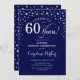 Surpresa 60º Convite de aniversário. Design elegante em azul marinho e prata brilhante fraca. Apresenta a fonte do script e os diamantes confetti. Saúde para 60 anos! Envie-me uma mensagem se precisar de mais personalização.