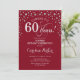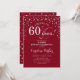 Surpresa 60º Convite de aniversário. Design elegante em vermelho escuro e prata brilhante fraca. Apresenta a fonte do script e os diamantes confetti. Saúde para 60 anos! Envie-me uma mensagem se precisar de mais personalização.