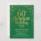 Surpresa 60º Convite de aniversário. Design elegante na floresta verde e ouro brilhante. Possui fonte de script na moda e confetti. Envie-me uma mensagem se precisar de idade personalizada.