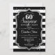 Surpresa 60º Convite de Aniversário. Design clássico com faixas pretas e brancas, fonte de script e prata brilhante. Perfeito para uma bolsa mensageifesta de aniversario elegante. Pode ser personalizado para mostrar qualquer idade. Envie-me uma mensagem se precisar de mais personalização.
