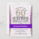 Surpreenda o 60º Convite de aniversário Elegante do design de em ouro brilhante falso, branco e roxo.