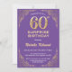 Convites Surpresa 60.º Aniversário Roxo e Dourada Brilhante