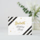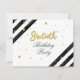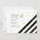 Modern Surprise 60th Birthday Script Geométrico Dourado Invitation com faixas pretas e pontos brilhantes de folhas de ouro com tipografia de script que você pode editar facilmente. Para mais personalização, clique no botão "Personalizar" e use nossa ferramenta de design para modificar este modelo.