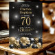 Ele é a estrela da noite!! Este fabuloso convite de festas de surpresa de 70 de aniversário para homens, com uma borda inferior de balões negros e dourados e o número 70 em ouro é perfeito para celebrar o homem no 70 de aniversário da sua vida. É tradicional e clássico enquanto é fresco, moderno e contemporâneo. Para personalizar, selecione simplesmente "Personalizar este modelo" e digite suas informações. É super fácil!