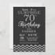 Surpresa 70 de Aniversário com Silver Glitter Chevron. Chalkboard. Glitter preto e prateado. Aniversário Adulto. Convidam o Homem ou a Mulher Bday. Para mais personalização, clique no botão "Personalizar" e use nossa ferramenta de design para modificar este modelo.