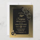Um moderno convite de festas de aniversário de 70, preto geométrico e ouro, enquadrado como surpresa.