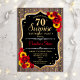 Surpresa 70 de Aniversário. Design branco, branco, vermelho e rústico feminino com ouro brilhante. Apresenta padrão de madeira, rosas vermelhas, girassóis, fontes de script e confetti. Perfeito para uma bolsa mensageifesta de aniversario elegante. Pode ser personalizado para mostrar qualquer idade. Envie-me uma mensagem se precisar de mais personalização.