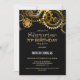 Organize a sua festa surpresa de 70 e convide seus amigos com este convite para ver engrenagens em preto e ouro.
