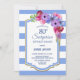Convite de festas de janto de aniversário de 80 de surpresa floral com listração azul.