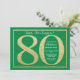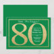 Convite de Aniversário para 80 de Surpresa. A Festa de aniversário verde e Dourada do brilho convoca com fundo verde. Surpresa Aniversário. Aniversário Adulto. Homens ou Mulheres no Bday Bash Party.