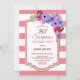 Convite de aniversário de 80 floral surpreendente, listrado, rosa.