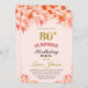 Convite de aniversário de 80 de surpresa floral, cor-de-rosa e ouro.