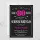 Convites Surpresa 80 de Aniversário Rosa Quente e Preto