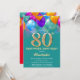 Surpresa 80 de Aniversário Teal e Balões Coloridos Dourados e Confetti Invitation. Para mais personalização, clique no botão "Personalizar" e use nossa ferramenta de design para modificar este modelo.