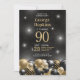 Ele é a estrela da noite!! Este fabuloso convite de festas de 90 de aniversário surpresa para homens, com uma borda inferior de balões negros e dourados e o número 90 em ouro, é perfeito para celebrar o homem no 90 de aniversário da sua vida. É tradicional e clássico enquanto é fresco, moderno e contemporâneo. Para personalizar, selecione simplesmente "Personalizar este modelo" e digite suas informações. É super fácil!