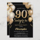 Surpresa 90 de Aniversário Negro e Balões Dourados Confetti Convite. Para mais personalização, clique no botão "Personalizar" e use nossa ferramenta de design para modificar este modelo.