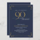É um aniversário de 90 surpresa especial, e é hora de comemorar! Você quer jogar o melhor baluarte na cidade? Certifique-se de que comece com o maior estilo com este 90 e Fabuloso Convite de Aniversário para Caligrafia Azul e Dourada. Certamente dará o tom para uma celebração glamourosa. Este belo convite apresenta caligrafia escrita à mão, que apresenta de forma artística "noventa" em letras luxuosas à mão contra um fundo azul marinho, adornada com delicadas espirais de ouro nos cantos superior e inferior. Esta imagem terá todos os seus hóspedes antecipando entusiasticamente as suas festividades da 90! Se você está realmente querendo fazer uma declaração para um 90 surpresa de aniversário, escolha este design, e prepare-se para todos os elogios que podem vir em seu caminho. Afinal de contas, todos os marcos deveriam ser comemorados com classe e sofisticação, e estes convites serão feitos! Para um evento totalmente coordenado, entre em contato com o designer de produtos correspondentes. Copyright Surridge Design Co. para Elegant Invites, todos os direitos reservados.