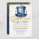 Um maravilhoso aniversário de surpresa "mantenha-o debaixo do seu chapéu" convite de festas. Este convite fabuloso apresenta um chapéu azul de cor d'água sobre um fundo de confete azul e dourado. Fácil de personalizar com seus próprios detalhes de celebração de festas de aniversário surpresa.