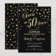 Design elegante em preto e dourado falso com confetes e fonte script. Saúde por 50 Anos! Perfeito para uma festa sofisticada. Mensagem para mim se precisar de um ano personalizado.