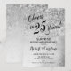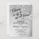 Design elegante em prata brilhante falsa com confetes e fonte script preta. Saúde por 25 Anos! Perfeito para uma festa estilosa. Mensagem para mim se precisar de um ano personalizado.