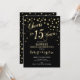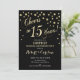 Design elegante em preto e dourado falso com confetes e fonte de letra cursiva. Saúde por 15 Anos! Perfeito para uma festa sofisticada. Mensagem para mim se precisar de um ano personalizado.