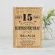 Convite de Surpresa de 15 Anos. Tipografia. Brindes aos 15 anos. Fundo de Madeira Rústica. Aniversário de Crianças. Aniversário de Homens ou Mulheres. Convite de Aniversário para Crianças, Meninos ou Meninas, Adolescentes. 13º 15º 16º 18º 20º 21º 30º 40º 50º 60º 70º 80º 90º 100º. Qualquer Idade. Para personalização adicional, clique no botão "Personalize" e use nossa ferramenta de design para modificar este modelo.